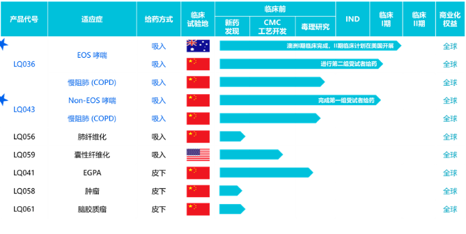 九州酷游官网生物的研发管线中,还包括治疗肺纤维化的LQ056和治疗囊性纤维化的LQ059,同样采用吸入给药。