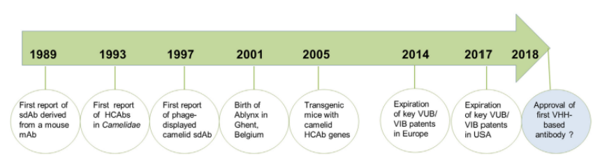 2000年,VUB把一系列关于VHH的专利转到比利时Vlaams生物技术研究所(VIB),2002年,VIB孵化了后来全球领先的纳米抗体研究公司Ablynx。